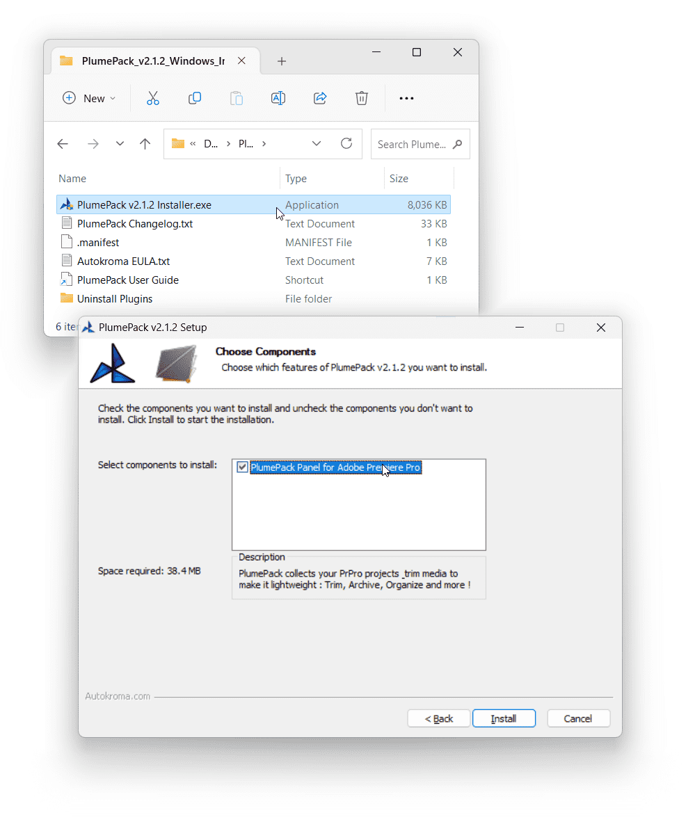 - Target .prproj folder is automatically opened in Windows Explorer / macOS Finder when PlumePack is finished